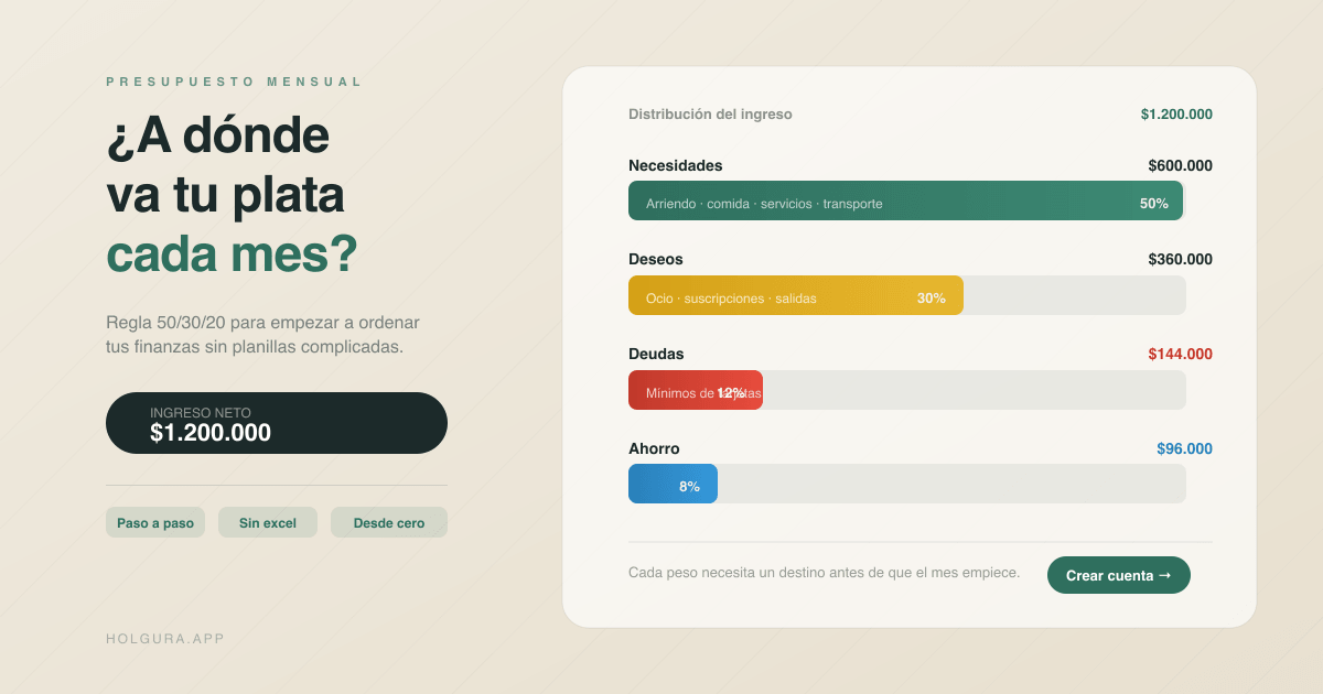 Enero empieza con buenas intenciones. El 10 del mes ya no sabes a dónde fue la plata. Esto no es falta de disciplina: es falta de sistema. Un presupuesto mensual bien construido no es una lista de restricciones, es un mapa que te dice exactamente qué puedes gastar, cuándo y en qué, sin culpa.